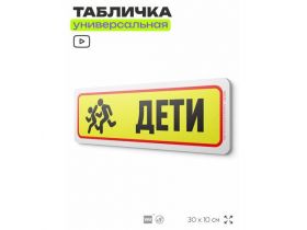 Табличка "Дети", на дверь и стену, информационная, пластиковая с двусторонним скотчем, 30х10 см, Айдентика Технолоджи 4609686587