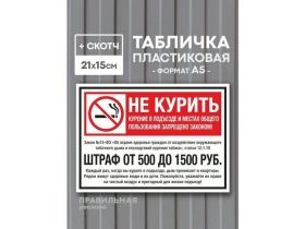 Табличка А5 "Не курить / Курение в подъезде запрещено- Закон №15-ФЗ /" 21х15 см. пластик 2 мм. + двухсторонний скотч. Правильная реклама 4426726881
