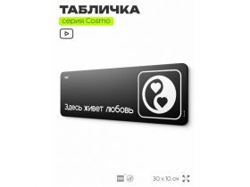 Табличка Здесь живет любовь, шуточная прикольная табличка на дверь и стену черная, для офиса и дома, серия COSMO FUN, 30х10 см, Айдентика Технолоджи 103662689774