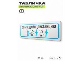 Табличка "Соблюдайте дистанцию", на дверь и стену, информационная, пластиковая с двусторонним скотчем, 30х10 см, Айдентика Технолоджи 4609672716
