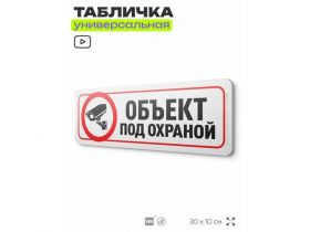 Табличка "Объект под охраной", на дверь и стену, информационная, пластиковая с двусторонним скотчем, 30х10 см, Айдентика Технолоджи 4609679780