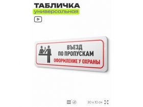 Табличка "Въезд по пропускам", на дверь и стену, информационная, пластиковая с двусторонним скотчем, 30х10 см, Айдентика Технолоджи 4609686594