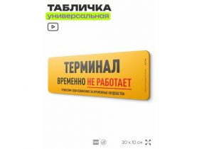 Табличка "Терминал временно не работает", на дверь и стену, информационная, пластиковая с двусторонним скотчем, 30х10 см, Айдентика Технолоджи 4609686586