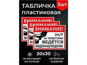 Ведется видеонаблюдение информационная табличка 20х30см, 3шт 4332760287