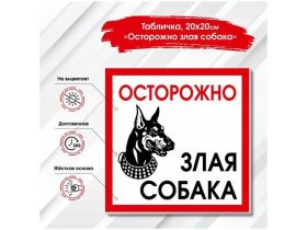 Информационная табличка "Осторожно злая собака" 200х200 мм. Объект находится под охраной собаки. ПВХ. УФ печать. 101902867449