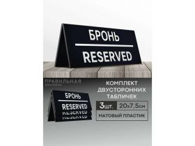 Табличка настольная "Забронировано / Зарезервировано / Reserved " 3 шт. 20х7,5 см. (двусторонняя) - Правильная реклама 101805091557