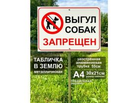 Табличка металлическая "Выгул собак запрещен" А4 (21х30 см) / Алюминий. (+Отверстия под саморезы и Скотч) 4436294802