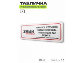 Табличка "Не оставляйте у мусоропровода коробки, бутылки и пр.", на дверь и стену, для подъезда, информационная, пластиковая с двусторонним скотчем, 30х10 см, Айдентика Технолоджи 103696272800