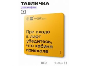 Табличка с правилами для лифта "При входе в лифт убедитесь, что кабина приехала", 18х18 см, пластиковая, SilverPlane x Айдентика Технолоджи 103696272316
