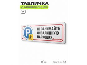 Табличка "Не занимайте инвалидную парковку", на дверь и стену, для подъезда, информационная, пластиковая с двусторонним скотчем, 30х10 см, Айдентика Технолоджи 103696269294