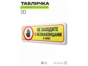 Табличка "Не заходите в лифт с незнакомцами", на дверь и стену, для подъезда, информационная, пластиковая с двусторонним скотчем, 30х10 см, Айдентика Технолоджи 103696248430