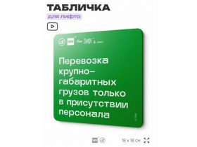 Табличка с правилами эвакуации и помощи "Перевозка крупногабаритных грузов только в присутствии персонала" для лифта и холла, 18х18 см, пластиковая, SilverPlane x Айдентика Технолоджи 103696083803
