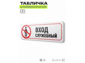 Табличка "Служебный вход", на дверь и стену, информационная, пластиковая с двусторонним скотчем, 30х10 см, Айдентика Технолоджи 103696083764