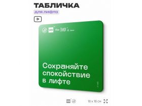 Табличка с правилами эвакуации и помощи "Сохраняйте спокойствие в лифте" для лифта и холла, 18х18 см, пластиковая, SilverPlane x Айдентика Технолоджи 103696082155