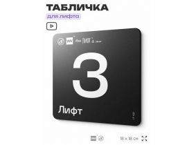 Табличка информационная "Лифт 3" для лифта и холла, 18х18 см, пластиковая, SilverPlane x Айдентика Технолоджи 103696269351