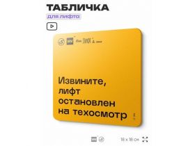 Табличка с правилами для лифта "Извините, лифт остановлен на техосмотр", 18х18 см, пластиковая, SilverPlane x Айдентика Технолоджи 103696272798