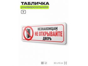 Табличка "Не открывайте незнакомцам дверь", на дверь и стену, для подъезда, информационная, пластиковая с двусторонним скотчем, 30х10 см, Айдентика Технолоджи 103696274478