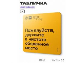 Табличка с правилами офиса "Держите в чистоте обеденное место" 18х18 см, пластиковая, SilverPlane x Айдентика Технолоджи 103696272278
