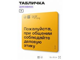 Табличка с правилами офиса "При общении соблюдайте деловую этику" 18х18 см, пластиковая, SilverPlane x Айдентика Технолоджи 103696269359