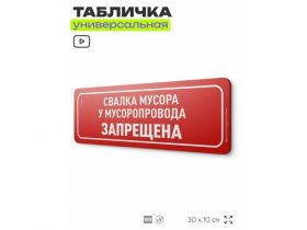 Табличка "Свалка мусора у мусоропровода запрещена", на дверь и стену, для подъезда, информационная, пластиковая с двусторонним скотчем, 30х10 см, Айдентика Технолоджи 103696101074