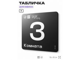 Табличка информационная "Комната №3" 18х18 см, пластиковая, SilverPlane x Айдентика Технолоджи 103696083739