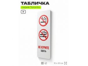 Табличка "Не курите здесь", на дверь и стену, для подъезда, информационная, пластиковая с двусторонним скотчем, 30х10 см, Айдентика Технолоджи 103696285810