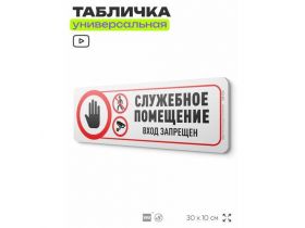 Табличка "Служебное помещение", на дверь и стену, информационная, пластиковая с двусторонним скотчем, 30х10 см, Айдентика Технолоджи 103696269428