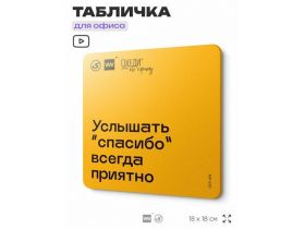 Табличка с правилами офиса "Услышать "спасибо" всегда приятно" 18х18 см, пластиковая, SilverPlane x Айдентика Технолоджи 103696079604