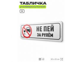 Табличка "Не пей за рулём", на дверь и стену, для подъезда, информационная, пластиковая с двусторонним скотчем, 30х10 см, Айдентика Технолоджи 103696269323