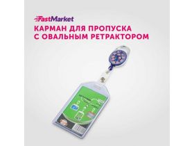 Бейдж для пропуска FastMarket, чехол держатель пластиковый с рулеткой, бейджик для школьника, синий принт 102021133816