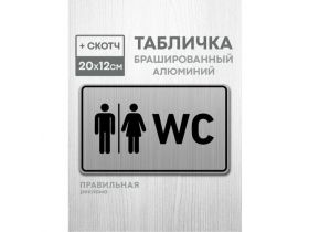 Табличка алюминиевая на туалет со скотчем, 20х12 см. 1 шт. / Табличка туалет, WC 4599760696