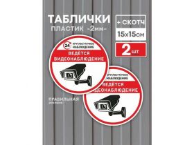 Табличка со скотчем ведётся видеонаблюдение D-15 см. 2 шт. (прочный пластик + защитная ламинация) 4422916763