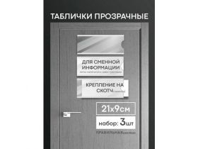 Табличка на кабинет / Карман на дверь, кабинет со сменной информацией 9х21 см. 3 шт (оргстекло 1,5 мм. + скотч) 4422894097