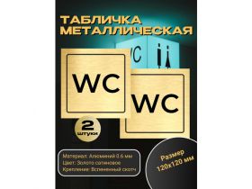 Табличка WC, на дверь, анодированная, золотой фон, 12x12 см, 2 шт 103805319870