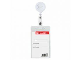 Бейдж вертикальный (90х60мм), с держателем-рулеткой 70 см, белый, BRAUBERG, 238243 102425837781