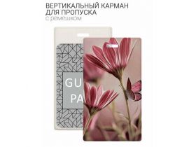 Чехол (бейдж) для пропуска и карт на ленте с принтом "Бабочка на розовом цветке" 103017896389