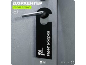 Дорхенгер "Идет уборка", табличка на ручку двери, черный, пластиковая, серия COSMO, Айдентика Технолоджи 103693558776