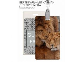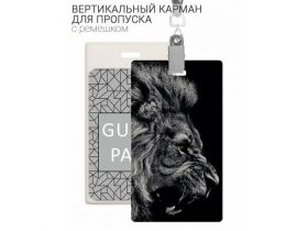 Чехол (бейдж) для пропуска и карт на ленте с принтом "Морда льва" 103017483446