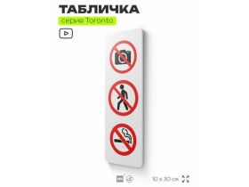 Табличка "Фотосъемка запрещена, не входить , не курить", на дверь и стену, информационная, пластиковая с двусторонним скотчем, 10х30 см, Айдентика Технолоджи 103696000558