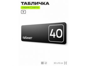 Табличка с номером кабинета "Кабинет №40", для офиса, 30 х 10 см, серия COSMO, черная, Айдентика Технолоджи 103693727159