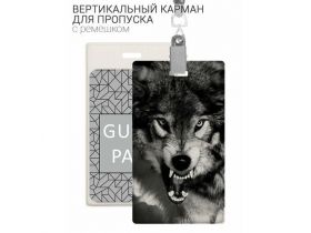 Чехол (бейдж) для пропуска и карт на ленте с принтом "Волчий оскал" 103017483471
