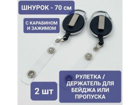 Брелок держатель рулетка усиленная / ретрактор для бейджа, ключей, пропуска / бейджика, 65 см, 2 кольца - черный/красный цвет 102914674746