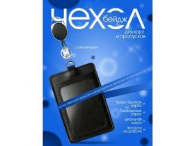 Чехол (бейдж) для пропуска и карт на рулетке черный 103017445507