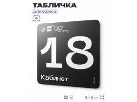 Табличка информационная "Кабинет №18" 18х18 см, пластиковая, SilverPlane x Айдентика Технолоджи 103695188912
