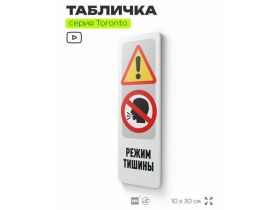 Табличка "Режим тишины", на дверь и стену, информационная, пластиковая с двусторонним скотчем, 10х30 см, Айдентика Технолоджи 103696000586