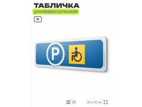 Табличка "Парковка для инвалидов", на дверь и стену, для подъезда, информационная, пластиковая с двусторонним скотчем, 30х10 см, Айдентика Технолоджи 103696000561