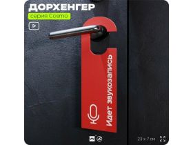 Дорхенгер "Идёт звукозапись", табличка на ручку двери, красный, пластиковая, серия COSMO, Айдентика Технолоджи 103693558769