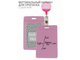 Чехол (бейдж) для пропуска и карт на рулетке с принтом "Life Formula" розовый 103017489658