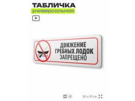 Табличка "Движение гребных лодок запрещено", на дверь и стену, информационная, пластиковая с двусторонним скотчем, 30х10 см, Айдентика Технолоджи 4609686602