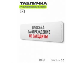 Табличка "Просьба, за ограждения не заходить", на дверь и стену, информационная, пластиковая с двусторонним скотчем, 30х10 см, Айдентика Технолоджи 4609672724